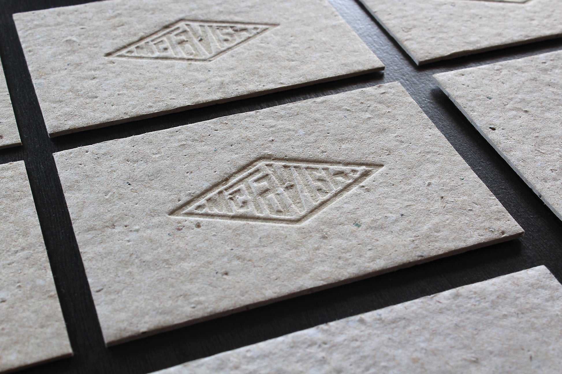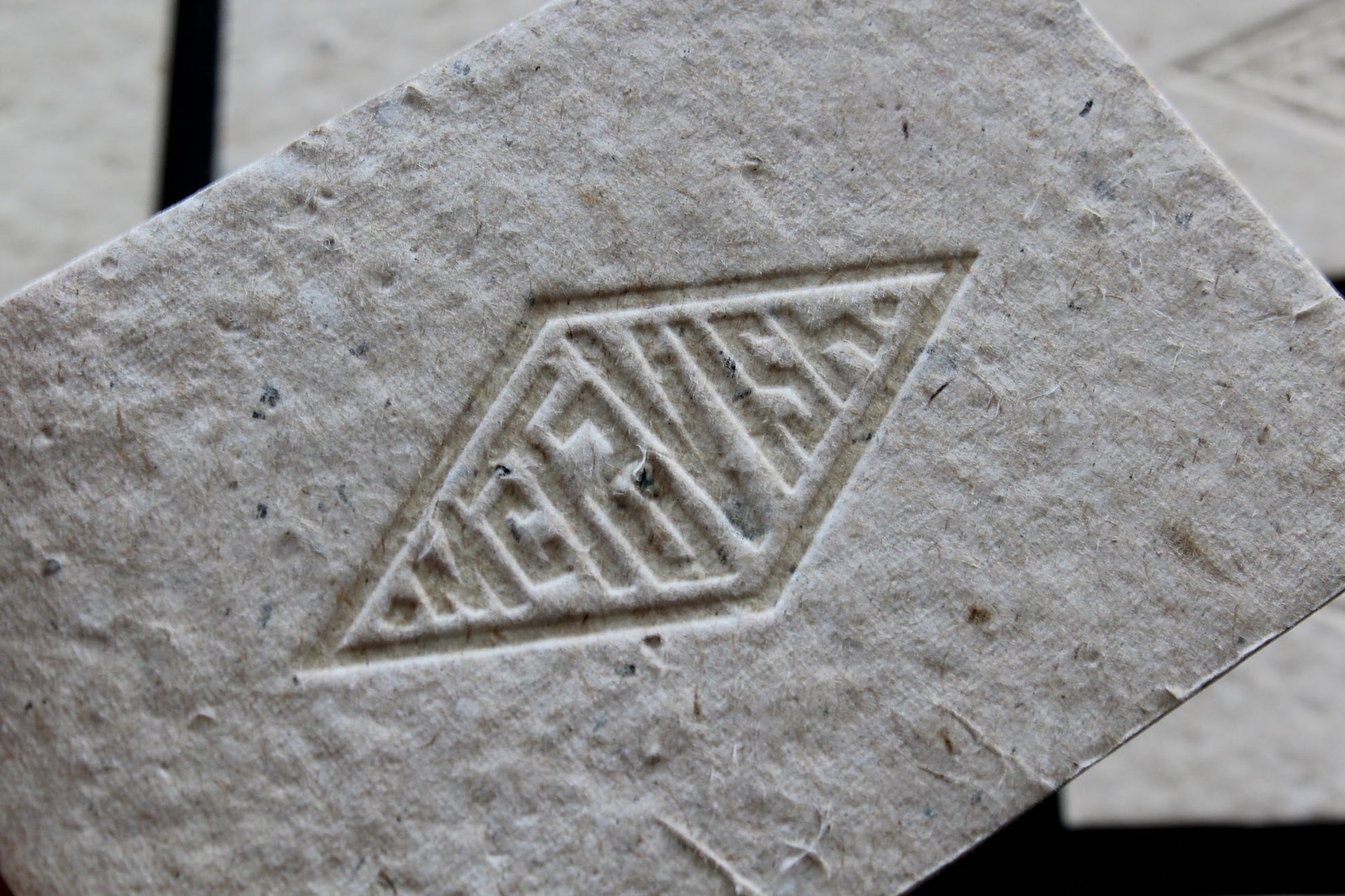 Printer's notes: Each card had to be individually lightly hammered prior to printing because the tiny solid resin chunks kept destroying the plate!