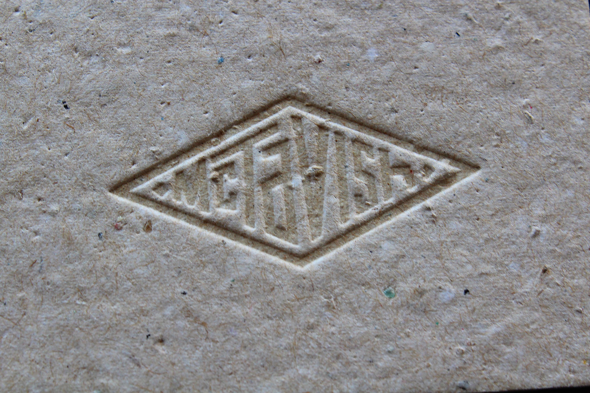 Each card was created from the factory offcuts of old order forms, waste paper, masking tape and tiny chunks of resin into individual cards by the highly respected paper artist Kate Ford. https://www.instagram.com/katefordartist